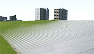 斜面の滑り止め用として突起(シボ)を付けた止水シートと弾性吸収力に富む補強マットを貼り合わせて一体化した堤防法面用遮水シートです。