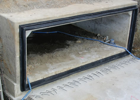 コンクリート構造物の継目部の伸縮、剪断等の変位を吸収し、漏水を防止します。ゴム製なので柔軟性、弾力性に優れ、変位に安全に追随できます。