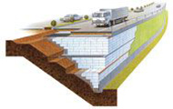 積み上げた場合、自立面が形成され、また、ポアソン比が0に近いため擁壁などの抗土圧構造物から防護壁程度に簡易化できます。